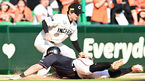 [OSEN=인천, 조은정 기자]14일 오후 인천 SSG랜더스필드에서 2023 신한은행 SOL KBO리그 SSG 랜더스와 한화 이글스의 경기가 열렸다. 8회초 2사 1루 한화 오그레디가 김인환의 중견수 오른쪽 안타 때 SSG 3루수 김성현에 앞서 3루로 슬라이