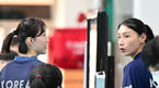 [OSEN=진천, 최규한 기자] 대한민국 여자배구대표팀이 16일 오후 충북 진천국가대표선수촌에서 공개 훈련을 진행했다.김연경 대표팀 어드바이저(오른쪽)과 한유미 코치가 훈련을 앞두고 선수들과 대화를 나누고 있다. 2023.05.16 / d