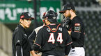 [OSEN=잠실,박준형 기자] 17일 오후 서울 잠실구장에서 2023 신한은행 SOL KBO리그 LG 트윈스와 KT 위즈의 경기가 진행됐다.4회말 무사 1,2루 LG 문보경의 1타점 적시타를 허용한 KT 이강철 감독이 마운드에 올라 김준태 포수, 슐리 선발투