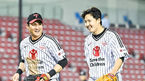 [OSEN=잠실,박준형 기자] 17일 오후 서울 잠실구장에서 2023 신한은행 SOL KBO리그 LG 트윈스와 KT 위즈의 경기가 진행됐다.5회초 KT 공격을 막은 LG 선발투수 임찬규가 이닝종료 후 오지환과 함께 미소 짓고 있다. 2023.05.17 / soul1014@osen.co.