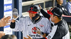 [OSEN=잠실,박준형 기자] 17일 오후 서울 잠실구장에서 2023 신한은행 SOL KBO리그 LG 트윈스와 KT 위즈의 경기가 진행됐다.4회말 1사 3루 LG 홍창기의 1타점 적시타때 홈을 밟은 3루 주자 이재원이 동료들의 축하를 받고 있다. 2023.05.17 / s