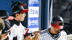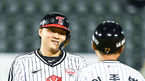[OSEN=잠실,박준형 기자] 17일 오후 서울 잠실구장에서 2023 신한은행 SOL KBO리그 LG 트윈스와 KT 위즈의 경기가 진행됐다.4회말 1사 3루 LG 홍창기의 1타점 적시타때 홈을 밟은 3루 주자 이재원이 이호준 코치의 축하를 받고 있다. 2023.05