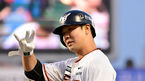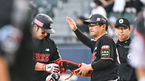 [OSEN=잠실,박준형 기자] 17일 오후 서울 잠실구장에서 2023 신한은행 SOL KBO리그 LG 트윈스와 KT 위즈의 경기가 진행됐다.1회초 2사 2루 케이티 박병호가 선취 1타점 적시타를 날린뒤 박정환 코치에게 장비를 전달하고 있다. 2023.05.17 /