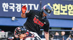 [OSEN=잠실,박준형 기자] 17일 오후 서울 잠실구장에서 2023 신한은행 SOL KBO리그 LG 트윈스와 KT 위즈의 경기가 진행됐다.2회초 2사 2루 KT 알포드의 안타때 LG 박동원 포수가 2루 주자 강백호를 홈태그아웃시키고 있다. . 2023.05.17 / soul10