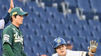 [OSEN=창원, 이석우 기자] 17일 창원 NC파크에서 2023 신한은행 SOL KBO리그 NC 다이노스와 SSG 랜더스의 경기가 열렸다. NC 다이노스 박민우가 1회말 2루 도루에 이어 3루 도루까지 성공 10시즌 연속 10 도루 기록을 달성하고 손을 들어 보