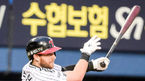 [OSEN=잠실,박준형 기자] 18일 오후 서울 잠실구장에서 2023 신한은행 SOL KBO리그 LG 트윈스와 KT 위즈의 경기가 진행됐다.4회초 무사 1,2루 KT 강백호가 동점 1타점 적시타를 날리고 있다 2023.05.18 / soul1014@osen.co.kr