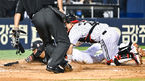 [OSEN=잠실,박준형 기자] 18일 오후 서울 잠실구장에서 2023 신한은행 SOL KBO리그 LG 트윈스와 KT 위즈의 경기가 진행됐다.4회초 무사 1,2루 KT 강백호의 동점 1타점 적시타때 2루 주자 장준원이 홈 슬라이딩하며 득점 성공하고 있다. 202
