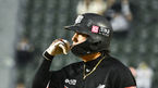 [OSEN=잠실,박준형 기자] 18일 오후 서울 잠실구장에서 2023 신한은행 SOL KBO리그 LG 트윈스와 KT 위즈의 경기가 진행됐다.4회초 무사 1,3루 KT 김상수가 역전 1타점 적시타를 날린뒤 박정환 코치에게 장비를 전달하고 있다. 2023.05.18 / sou