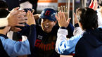 [OSEN=대전, 최규한 기자] 18일 오후 대전 한화생명이글스파크에서 ‘2023 신한은행 SOL KBO리그’ 한화 이글스와 롯데 자이언츠의 경기가 열렸다.1회초 무사 선두타자로 나선 롯데 김민석이 선제 우월 솔로포를 날리고 홈을 밟은 뒤