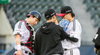 [OSEN=잠실,박준형 기자] 18일 오후 서울 잠실구장에서 2023 신한은행 SOL KBO리그 LG 트윈스와 KT 위즈의 경기가 진행됐다.2회초 KT 강백호에게 볼넷을 허용한 LG 선발투수 이지강이 김경태 투수 코치와 이야기를 나누고 있다. 2023.05.18 /
