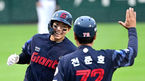[OSEN=잠실,박준형 기자] 18일 오후 서울 잠실구장에서 2023 신한은행 SOL KBO리그 LG 트윈스와 KT 위즈의 경기가 진행됐다.1회말 2사 3루 LG 오스틴이 동점 1타점 적시타를 날리고 세리머니를 하고 있다. 2023.05.18 / soul1014@osen.co.kr