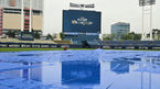 [OSEN=창원, 이석우 기자] 18일 창원 NC파크에서 2023 신한은행 SOL KBO리그 NC 다이노스와 SSG 랜더스의 경기가 열린다. 창원NC파크 내야를 덮은 방수포에 비가 내리고 있다. 2023.05.18 / foto0307@osen.co.kr