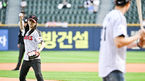 [OSEN=잠실, 박준형 기자] 19일 오후 서울 잠실구장에서 2023 신한은행 SOL KBO리그 LG 트윈스와 한화 이글스의 경기가 진행됐다. 경기 앞서 김초롱 MBC 아나운서가 남편 신성욱 판사와 함께 시구-시타를 하고 있다. 2023.05.19 / soul1014@osen.