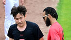 [OSEN=광주, 최규한 기자] 19일 오후 광주-기아 챔피언스 필드에서 ‘2023 신한은행 SOL KBO리그’ KIA 타이거즈와 키움 히어로즈의 경기가 열린다.KIA 외국인투수 메디나가 훈련 중 동료들에게 인사하고 있다. 2023.05.19 / dreamer@osen.co.kr