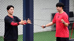 [OSEN=잠실, 박준형 기자] 19일 오후 서울 잠실구장에서 2023 신한은행 SOL KBO리그 LG 트윈스와 한화 이글스의 경기가 진행된다. 경기를 앞두고 LG 정우영이 류지현 해설위원과 이야기 나누고 있다. 2023.05.19 / soul1014@osen.co.kr