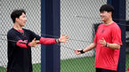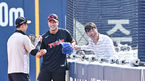 [OSEN=광주, 최규한 기자] 19일 오후 광주-기아 챔피언스 필드에서 ‘2023 신한은행 SOL KBO리그’ KIA 타이거즈와 키움 히어로즈의 경기가 열린다.KIA 외국인투수 메디나가 러닝 훈련 중인 윤영철을 격려하고 있다. 2023.05.19 / dreamer@osen