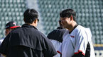 [OSEN=잠실, 박준형 기자] 19일 오후 서울 잠실구장에서 2023 신한은행 SOL KBO리그 LG 트윈스와 한화 이글스의 경기가 진행된다. 경기를 앞두고 한화 채은성이 LG 이종범 코치와 인사를 나누고 있다. 2023.05.19 / soul1014@osen.co.kr