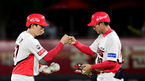 [OSEN=부산, 이석우 기자] 19일 부산 사직구장에서 2023 신한은행 SOL KBO리그 롯데 자이언츠와 SSG 랜더스의 경기가 열렸다. 롯데 자이언츠 박세웅이 6회초를 무실점으로 막고 노진혁, 박승욱과 하이파이브를 하고 있다. 2023.05.19 / foto0