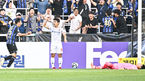 [OSEN=인천, 박준형 기자] 20일 오후 인천축구전용경기장에서 ‘하나원큐 K리그 2023 14라운드’ 인천UTD와 광주FC의 경기가 진행됐다.후반 광주FC 김경민 골키퍼가 인천 델브리지의 헤더슛을 막아내고 있다. 2023.05.20 / soul1014@osen.co.kr