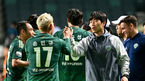 [OSEN=전주, 최규한 기자] 21일 오후 전주월드컵경기장에서 '하나원큐 K리그1 2023' 전북 현대와 수원FC의 경기가 열렸다.후반 전북 송민규가 다시 앞서가는 팀 두번째 골을 작렬시킨 뒤 김두현 감독대행과 인사를 나누고 있다. 2023.0