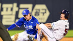 [OSEN=잠실, 김성락 기자] 25일 오후 서울 송파구 잠실야구장에서 2023 신한은행 SOL KBO리그 두산 베어스와 삼성 라이온즈의 경기가 열렸다.5회말 1사 1루 두산 정수빈의 투수 앞 땅볼 때 1루 주자 김재호가 포스아웃되고 있다. 2023.05.2