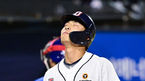 [OSEN=잠실, 김성락 기자] 25일 오후 서울 송파구 잠실야구장에서 2023 신한은행 SOL KBO리그 두산 베어스와 삼성 라이온즈의 경기가 열렸다.5회말 2사 2루 두산 이유찬이 헛스윙 삼진아웃된 뒤 아쉬워하고 있다. 2023.05.25 /ksl0919@osen.co.