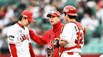 [OSEN=인천, 박준형 기자] 25일 오후 인천 SSG 랜더스 필드에서 2023 신한은행 SOL KBO리그 SSG 랜더스와 LG 트윈스의 경기가 진행됐다.1회초 무사 만루 위기 맞은 SSG 선발투수 송영진과 조형우 포수가 조웅천 투수 코치와 이야기를 나누