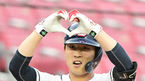 [OSEN=창원, 이석우 기자] 26일 창원 NC파크에서 2023 신한은행 SOL KBO리그 NC 다이노스와 한화 이글스의 경기가 열렸다. NC 다이노스 김주원이 2회말 무사 만루 1타점 적시타를 치고 세리머니를 하고 있다. 2023.05.26 / foto0307@osen.co.kr