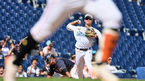 [OSEN=고척, 박준형 기자] 27일 오후 서울 고척스카이돔에서 2023 신한은행 SOL KBO리그 키움 히어로즈와 롯데 자이언츠의 경기가 진행됐다.3회말 2사 1루 롯데 반즈 투수가 키움 김휘집을 삼진아웃시킨뒤 마운드 위에 미끌어져 있다.