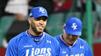 [OSEN=인천, 민경훈 기자] 30일 오후 인천 SSG 랜더스 필드에서 2023 신한은행 SOL KBO리그 SSG 랜더스와 삼성 라이온즈의 경기가 진행됐다.6회말을 마친 삼성 선발 수아레즈가 1루수 오재일에게 축하를 받고 있다. 2023.05.30 /rumi@osen.co.kr