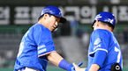 [OSEN=창원, 이석우 기자] 31일 창원 NC파크에서 2023 신한은행 SOL KBO리그 NC 다이노스와 두산 베어스의 경기가 열렸다. 두산 베어스 양의지가 5회초 2사 2루 양석환의 적시타 때 득점을 올리고 이승엽 감독의 축하를 받고 있다. 2023.05