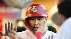 [OSEN=인천, 민경훈 기자] 1일 오후 인천 SSG 랜더스 필드에서 2023 신한은행 SOL KBO리그 SSG 랜더스와 삼성 라이온즈의 경기가 열렸다.3회말 무사 주자 2루 SSG 한유섬의 우중간 1타점 적시 2루타때 홈을 밟은 에레디아가 덕아웃에서 하