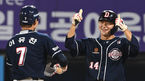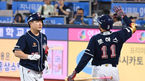 [OSEN=수원, 최재현 기자] 2일 오후 경기도 수원 KT위즈파크에서 ‘2023 신한은행 SOL KBO리그’ KT 위즈와 두산 베어스의 경기가 열렸다.8회 초 1사 2,3루 이유찬이 3점 홈런을 치고 박계범과 기쁨을 나누고 있다. 2023.06.02 /hyun309@osen.co.kr