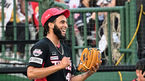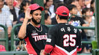 [OSEN=부산, 이석우 기자] 3일 부산 사직구장에서 2023 신한은행 SOL KBO리그 롯데 자이언츠와 KIA 타이거즈의 경기가 열렸다. KIA 타이거즈 메디나가 5회말 2사 2루 롯데 자이언츠 박승욱의 타구를 잡은 이우성을 보며 활짝 웃고 있다.