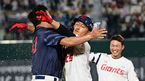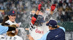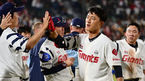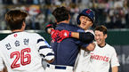 [OSEN=부산, 이석우 기자] 3일 부산 사직구장에서 2023 신한은행 SOL KBO리그 롯데 자이언츠와 KIA 타이거즈의 경기가 열렸다. 롯데 자이언츠 노진혁이 9회말 1사 만루 끝내기 안타를 치고 동료들의 축하를 받고 있다. 2023.06.03 / foto0307@o