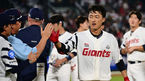[OSEN=부산, 이석우 기자] 3일 부산 사직구장에서 2023 신한은행 SOL KBO리그 롯데 자이언츠와 KIA 타이거즈의 경기가 열렸다. 롯데 자이언츠 나균안이 9회말 1사 만루 노진혁의 끝내기로 6-5 짜릿한 승리를 하고 하이파이브를 하고 있