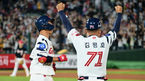 [OSEN=부산, 이석우 기자] 3일 부산 사직구장에서 2023 신한은행 SOL KBO리그 롯데 자이언츠와 KIA 타이거즈의 경기가 열렸다. 롯데 자이언츠 노진혁이 9회말 1사 만루 끝내기 안타를 치고 김평호 코치는 만세를 부르고 있다. 2023.06.03 /