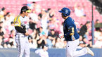 [OSEN=잠실, 최재현 기자] 3일 오후 서울 송파구 잠실야구장에서 2023 신한은행 SOL KBO리그 LG 트윈스와와 NC 다이노스의 경기가 열렸다.4회 초 선투타자로 나온 권희동이 솔로홈런을 치고 더그아웃으로 향하며 윤형준과 하이파이브