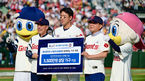 [OSEN=부산, 이석우 기자] 3일 부산 사직구장에서 2023 신한은행 SOL KBO리그 롯데 자이언츠와 KIA 타이거즈의 경기가 열렸다. 이영건 레스멜리오 대표와 하윤수 부산시교육감이 부산지역 청소년 및 소외계층에 5천5백만원 상당의 가
