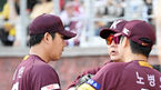 [OSEN=부산, 이석우 기자] 3일 부산 사직구장에서 2023 신한은행 SOL KBO리그 롯데 자이언츠와 KIA 타이거즈의 경기가 열렸다. 롯데 자이언츠 배영수 코치가 2회초 실점이 쌓여가자 마운드에 올라 나균안과 얘기하고 있다. 2023.06.03 / fo