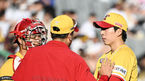 [OSEN=잠실, 최재현 기자] 3일 오후 서울 송파구 잠실야구장에서 2023 신한은행 SOL KBO리그 LG 트윈스와와 NC 다이노스의 경기가 열렸다.1회 초 1사 1,2루 마틴이 2타점 적시타를 치고 코칭스태프와 주막을 맞대고 있다. 23.06.03 /hyun309@os
