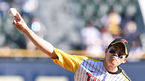 [OSEN=인천, 민경훈 기자] 3일 오후 인천 SSG 랜더스 필드에서 2023 신한은행 SOL KBO리그 SSG 랜더스와 키움 히어로즈의 경기가 열렸다.경기 전 캐릭터 제이릴라가 시구를 하고 있다. 2023.06.03 /rumi@osen.co.kr
