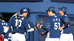 [OSEN=잠실, 이대선 기자] 4일 오후 서울 잠실야구장에서 2023 신한은행 SOL KBO리그 LG 트윈스와 NC 다이노스의 경기가 열렸다.2회말 수비를 마친 NC 박세혁과 이재학이 더그아웃으로 향하며 하이파이브를 하고 있다. 2023.06.04 /sunday@osen