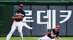 [OSEN=인천, 민경훈 기자] 4일 오후 인천 SSG 랜더스 필드에서 2023 신한은행 SOL KBO리그 SSG 랜더스와 키움 히어로즈의 경기가 열릴 예정인 가운데 그라운드 훈련이 진행됐다.키움 이지영이 3루에서 수비연습을 하고 있다. 2023.06.04 /rum