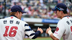 [OSEN=부산, 이석우 기자] 4일 부산 사직구장에서 2023 신한은행 SOL KBO리그 롯데 자이언츠와 KIA 타이거즈의 경기가 열렸다. 롯데 자이언츠 한현희가 5회초 2사 2루 KIA 타이거즈 류지혁의 타구를 잡아 아웃시킨 윤동희와 하이파이브