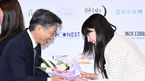 [OSEN=이대선 기자] 5일 오전 서울 서초구 KOTRA에서 ‘프랑크푸르트 한류박람회 한류 홍보대사 위촉식’이 열렸다.그룹 스테이씨 윤이 유정열 KOTRA 사장으로부터 꽃다발을 받고 있다. 2023.06.05 /sunday@osen.co.kr