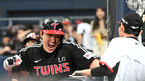[OSEN=고척, 이대선 기자] 7일 오후 서울 고척스카이돔에서 ‘2023 신한은행 SOL KBO리그’ 키움 히어로즈와 LG 트윈스의 경기가 열렸다.8회초 2사 2루에서 LG 박동원이 좌월 투런 홈런을 치고 홈에서 오스틴과 환호하고 있다. 2023.06.07