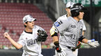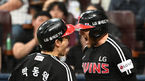 [OSEN=고척, 이대선 기자] 7일 오후 서울 고척스카이돔에서 ‘2023 신한은행 SOL KBO리그’ 키움 히어로즈와 LG 트윈스의 경기가 열렸다.8회초 2사 2루에서 LG 박동원이 좌월 투런 홈런을 치고 홈에서 오스틴과 환호하고 있다. 2023.06.07