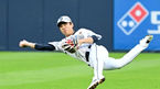 [OSEN=잠실, 조은정 기자] 7일 서울 잠실구장에서 2023 신한은행 SOL KBO리그 두산 베어스와 한화 이글스의 경기가 열렸다.3회초 1사 두산 2루수 이유찬이 한화 노시환의 타구를 송구하던 중 넘어지고 있다. 2023.06.07 /cej@osen.co.kr