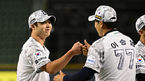 [OSEN=부산, 이석우 기자] 8일 부산 사직구장에서 2023 신한은행 SOL KBO리그 롯데 자이언츠와 KT 위즈의 경기가 열렸다. 롯데 자이언츠 최이준이 연장 10회초를 무실점으로 막고 안치홍의 응원의 박수를 받고 있다. 2023.06.08 / foto0307@ose